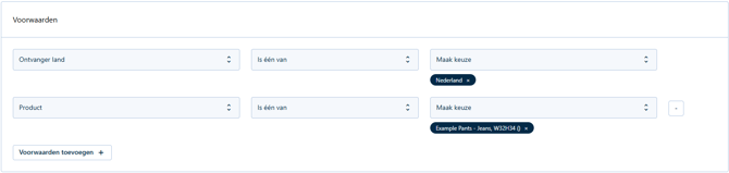 Zodra je een verzendregel wilt aanmaken klik je op de knop “Voeg regel toe“ rechtsboven bij het overzicht. Hier kan je een verzendregel instellen. ![]()